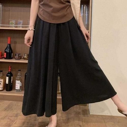 여성용 가을 겨울 빅사이즈 하이웨스트 5부 팬츠 밴딩 A라인 와이드 모직 반바지