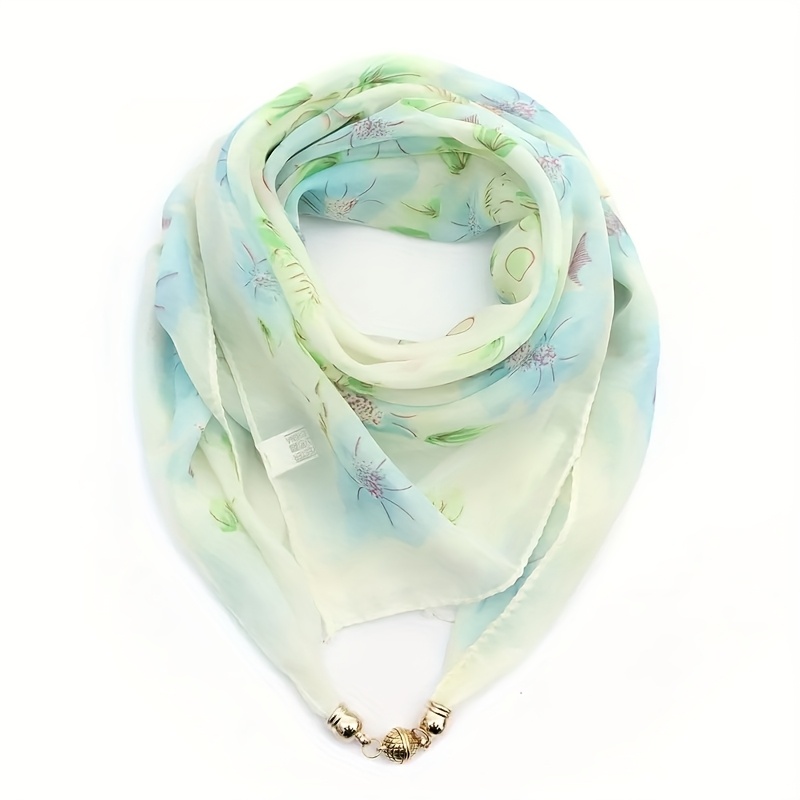 TEMU 플로랄 스퀘어 스카프 자석 클라스프 - 여성용 가벼운 폴리에스터 넥 랩, 핑크 & 골드 악센트, 캐주얼 및 프로페셔널 의상에 다용도, 따뜻하고 통기성 좋은 패션 액세서리, 우아한 디자인