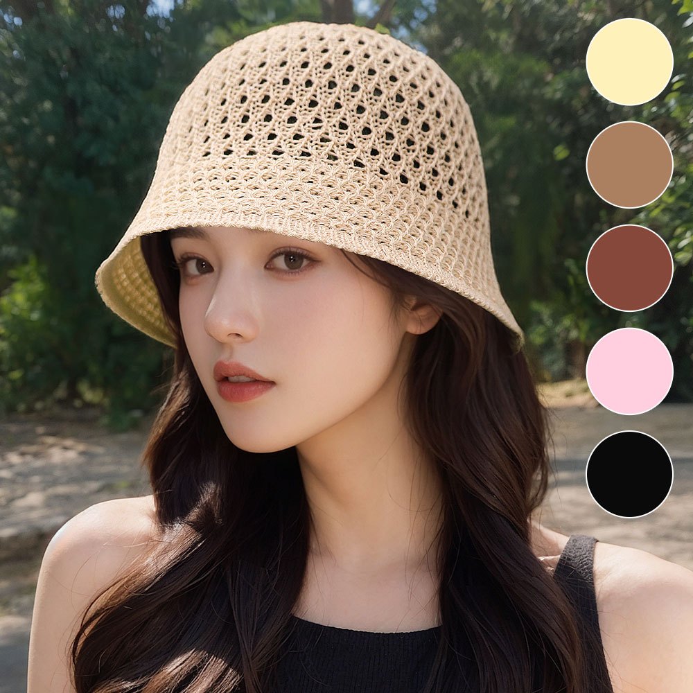 TEMU 여성 여름 니트 짜임 라탄 버킷햇 모자, 캐주얼한 보닛햇, 통기성 좋은 썬햇, 시원하고 가벼운 벙거지 모자, 챙모자