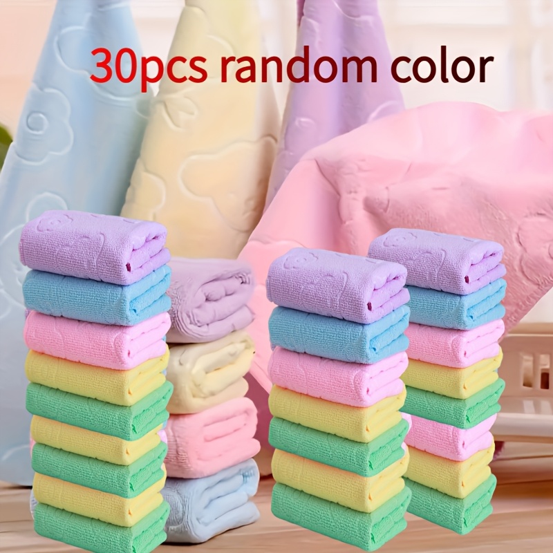 TEMU 30장 인쇄형 휴대용 얼굴 타월 및 핸드 타월 - 부드럽고 빠른 건조, 핑크, 그린, 휴가 선물용