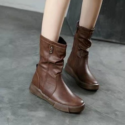 TEMU 여성용 따뜻한 겨울 앵클 부츠, 편안한 안감 플랫 부츠, 슬립온 라운드 토 솔리드 컬러 미드 캐프 패션 부츠 (중장년 및 노년층용)|여성운동화