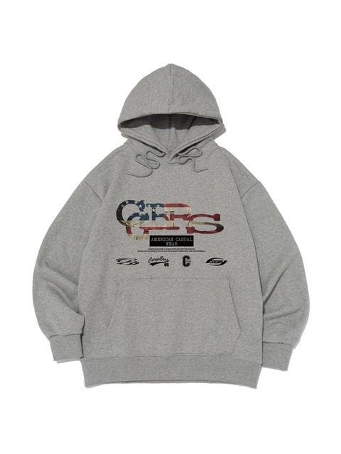 [카고브로스] 플래그 패턴 로고 후드 티셔츠 (그레이)