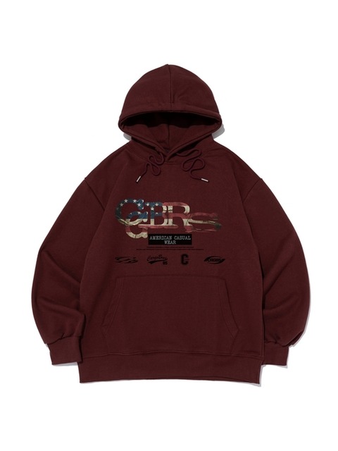 [카고브로스] 플래그 패턴 로고 후드 티셔츠 (와인)