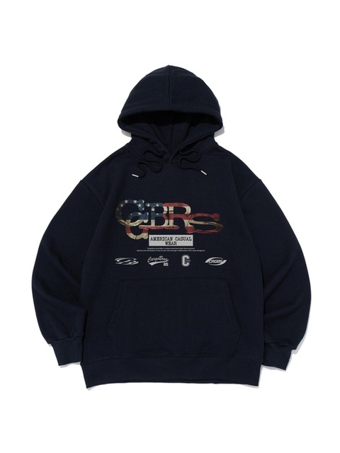 [카고브로스] 플래그 패턴 로고 후드 티셔츠 (네이비)