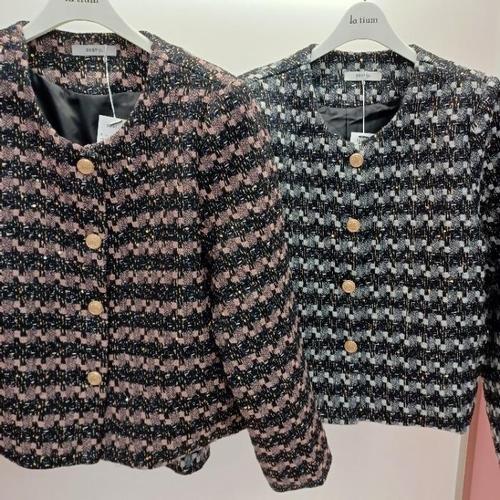 Destijl HC06 숏짧은 비즈배색 옆주머니 가로결 라운드 트위드쟈켓 D2533j