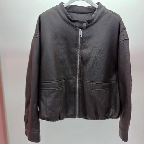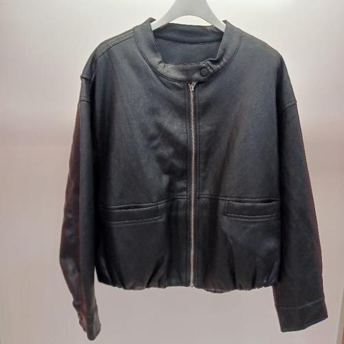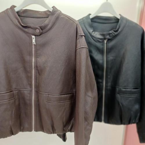 Destijl HC06 짧은 품넉넉한 라이더 레더 라운드 집업 벌룬 부드러운가죽