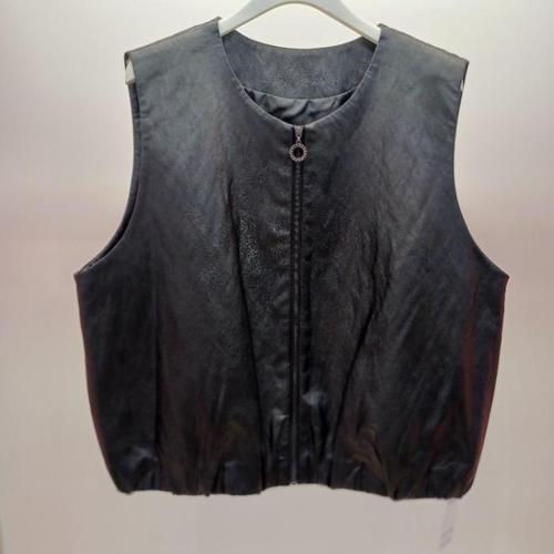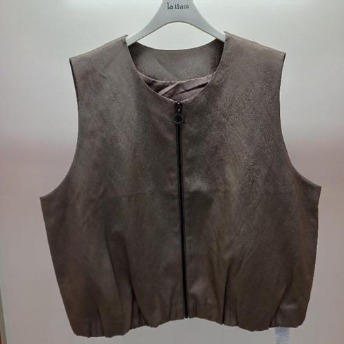 Destijl HC06 짧은 크롭 품넉넉한 라이더 레더 라운드 집업 벌룬 가죽조끼