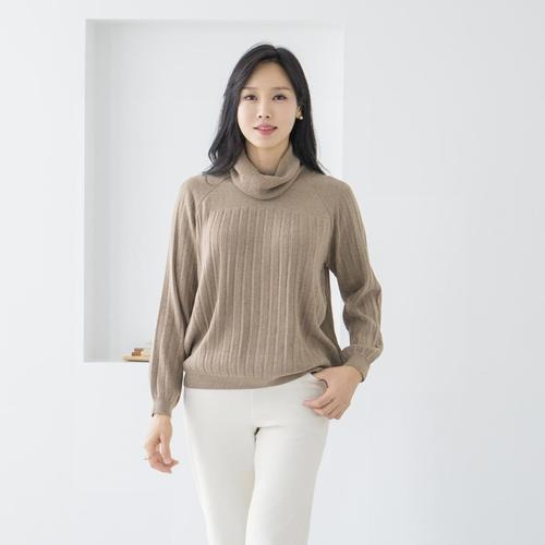 엄마옷 마담4060 니트줄지폴라티셔츠-QTE2511028-