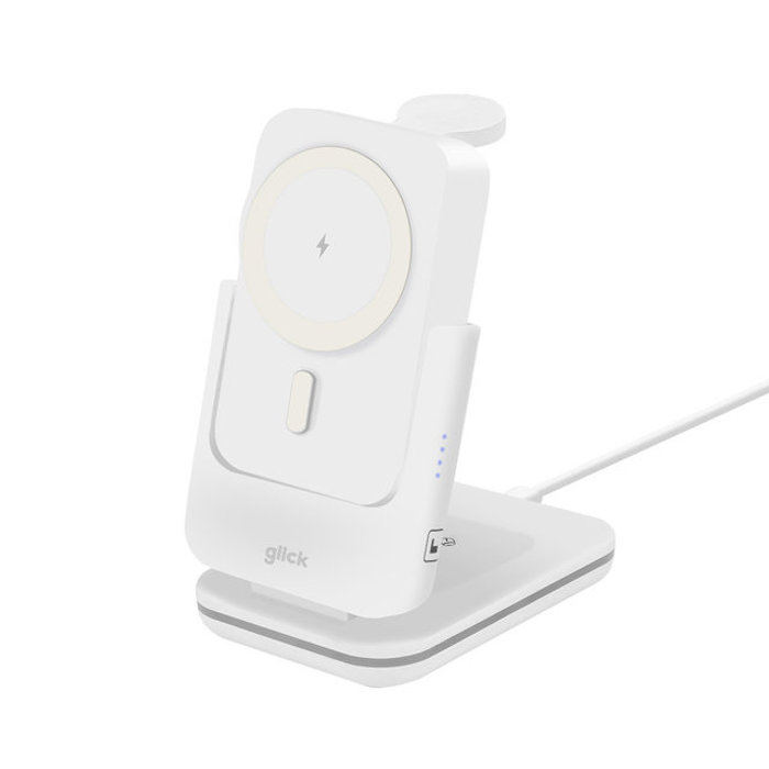 지클릭커 지클릭커 그릭 폴딩 3IN1 맥세이프 배터리 충전기 세트 화이트