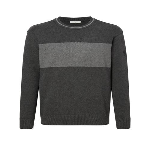 헤지스 골프 [간절기필수템][ONLINE EXCLUSIVE] 그레이 남성 컬러배색 라운드 니트 풀오버 (HUSW4C921G2)