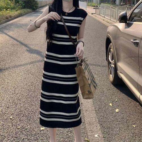[에이치플러스몰]여자 스트라이프 나시 롱 원피스 H라인 여름 캐주얼