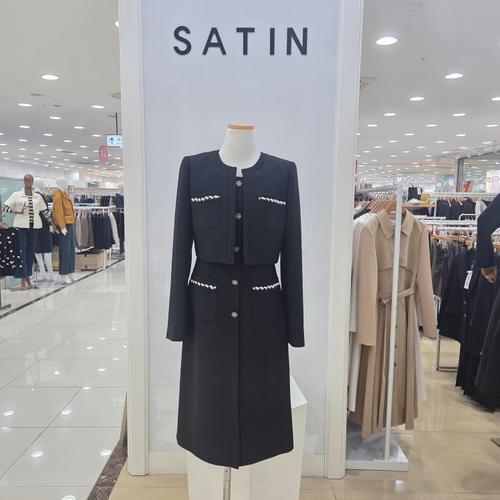 [샤틴]자켓 배색 H라인 원피스 S254B610_YS