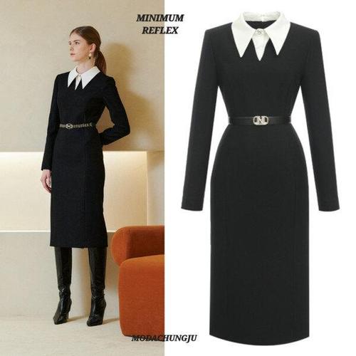 [시크라인] (~XXL까지) 글레이 트위드 배색 H라인 원피스 봄 가을 오피스룩 하객룩 데이트룩 모임룩 미시룩 빅사이즈