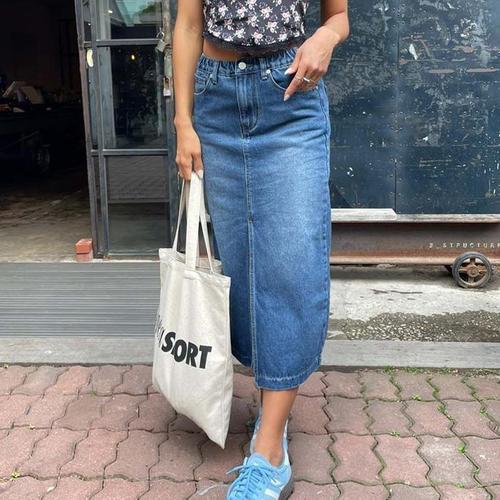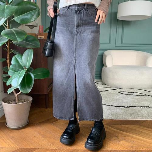 끌로이 여자 데님스커트 H라인 청치마 트임 맥시스커트