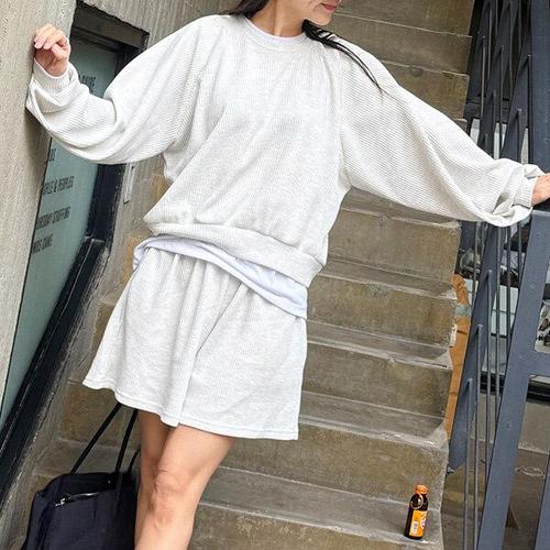 에이치스타일 H스타일(SET)어반니트치마세트 봄 여름 여성 반팔 트레이닝복세트 츄리닝셋트 스커트셋업 홈웨어