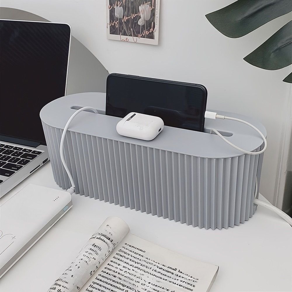 TEMU 대용량 데스크탑 케이블 정리함 - 전원 스트립, 충전기 및 액세서리를 위한 튼튼한 플라스틱 케이블 관리 시스템, 2가지 색상(흰색/회색)으로 제공 - 엉망진창한 케이블을 숨기고, 케이블 보관함, 케이블 정리함, 와이어 박스.