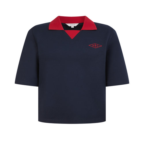 헤지스 여성 네이비 자수장식 면혼방 반팔카라티셔츠 (HSTS6B405N2)