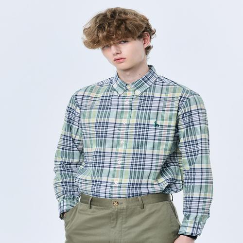 헤지스 남성 그린 마드라스 체크 강연 셔츠 (HZSH5B332E2)