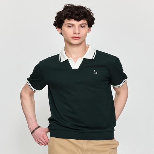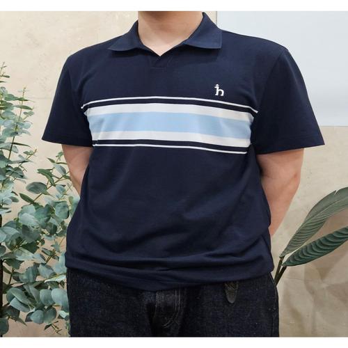 헤지스 남성 네이비 배색 오픈카라 티셔츠 (HZTS5B408N2)