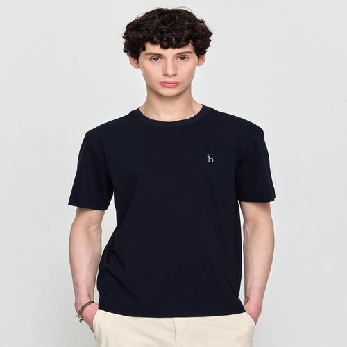 헤지스 남성 [25주년][GARMENT DYE] 네이비 빅퍼피 반팔 크루넥 티셔츠 (HZTS5B003N2)
