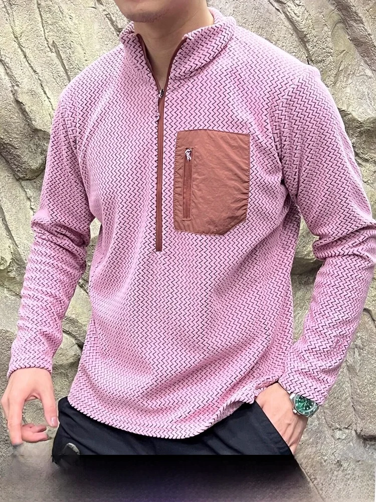 TEMU 남성용 쿼터집업 스웨터 하이넥 풀오버 자카드 패턴 - 가을/겨울용 따뜻한 겨울 스웨터, 캐주얼 오피스웨어, 쿼터집업 칼라, 벨트 없는 레귤러핏 레이어링용 스웨터
