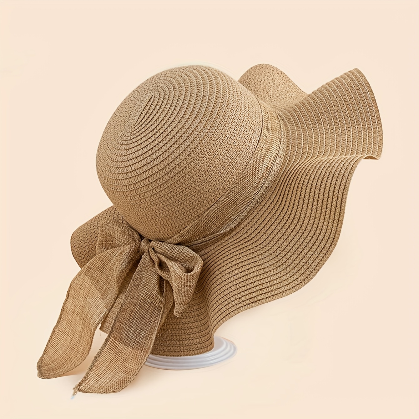 TEMU 여성용 넓은 챙 해변 모자, 물결 모양 장식, 간편한 단색 디자인