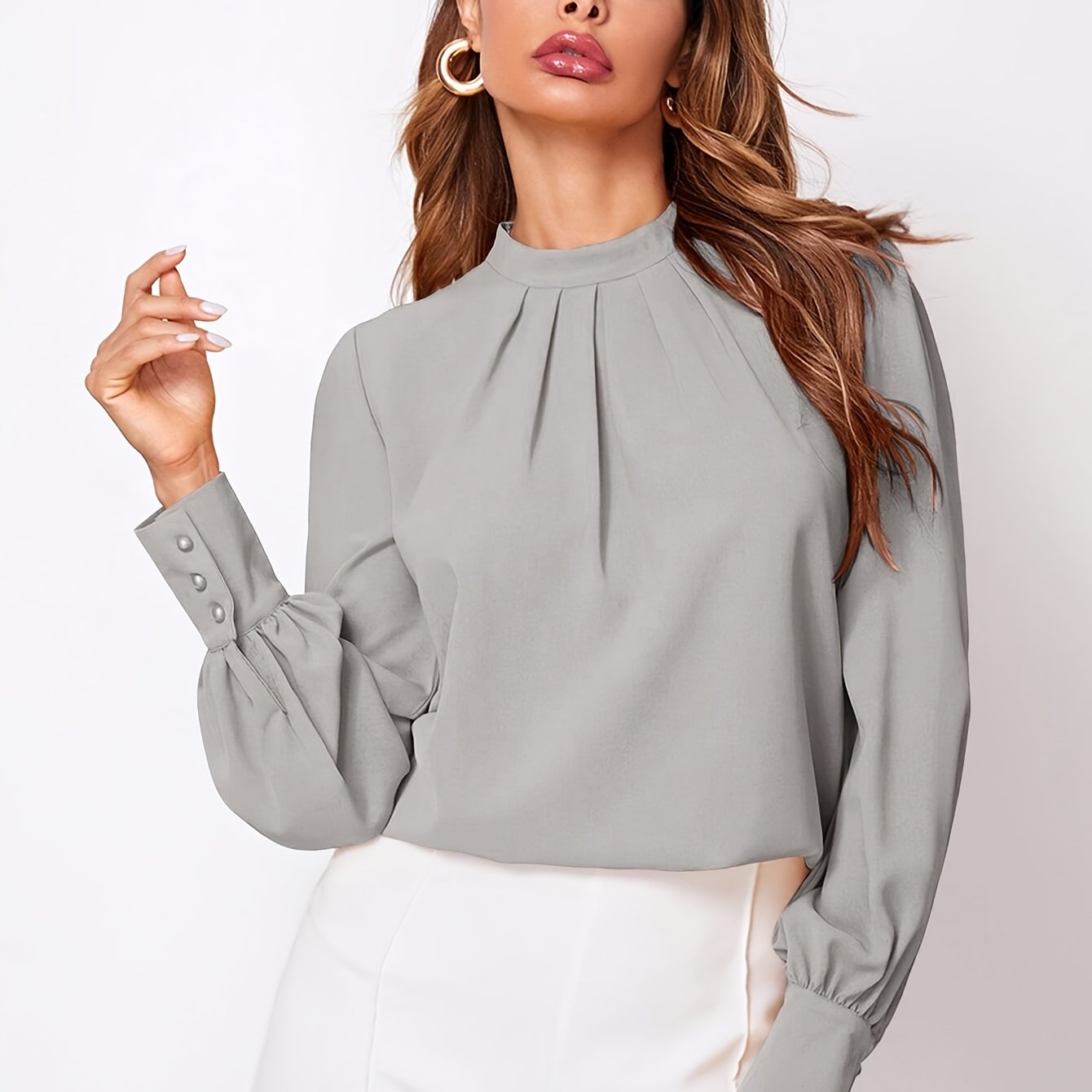 TEMU 여성용 우아한 슬리브 블라우스 - 단색 라운드넥 버튼업 셔츠, 사계절 캐주얼 & 포멀 웨어, 비침 방지, 핸드워시 전용, 고급스러운 스타일, 품질 좋은 소재, 클래식 디자인, 내구성 있는 재질, 오피스 여성복