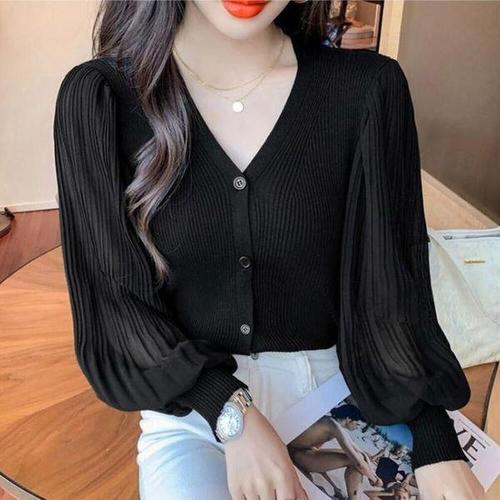 [다잇템][다잇템] 여성 V넥 소매주름 귀여운 골지 블라우스 가디건_23200514_588872