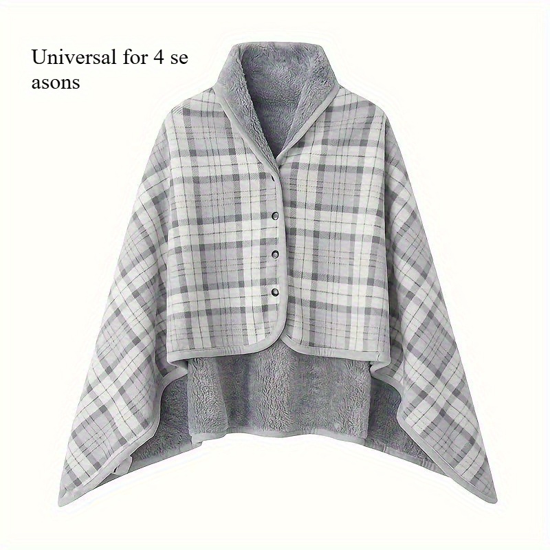 TEMU 4계절용 범용 웨어러블 블랭킷 숄 - 이중 레이어 두꺼운 체크 패턴, 레트로 스타일, 사계절용 다용도 아웃도어, 사무실 & 캐주얼 사용, 손세탁만 가능, 혼합 색상, 오피스 웨어러블 블랭킷, 다용도 패션 액세서리, 튼튼한 원단