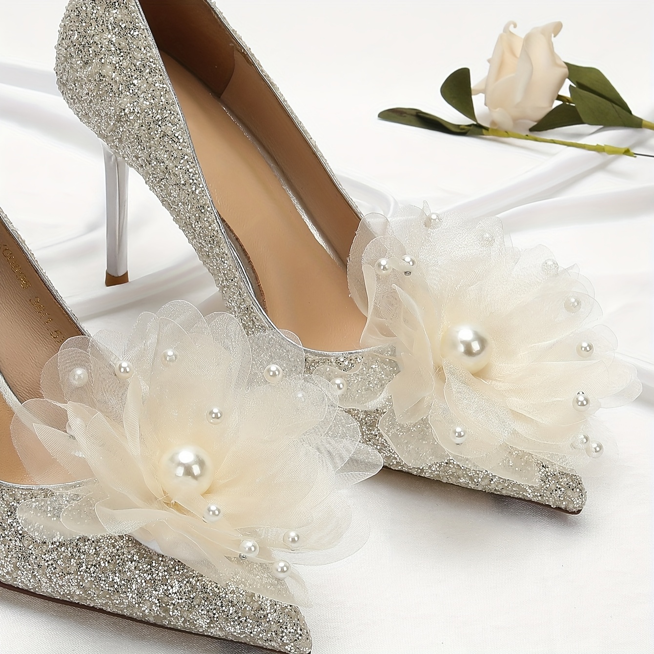 TEMU 우아한 분리형 핑크 꽃 신발 클립 1쌍 - 폴리에스터, 여성용 포인트 토 하이힐 액세서리, 웨딩 및 공식 행사에 완벽한 고급스러운 플로럴 디자인 조절 가능한 스트랩 신발 장식