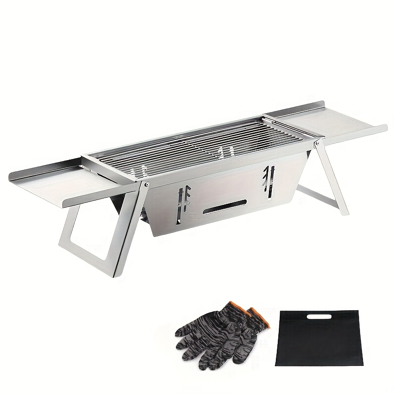 TEMU 1개 스테인리스 스틸 바베큐 그릴, 야외 두껍게 접을 수 있는 숯불 그릴, 컴팩트 홈용 1초 접이식 숯불 꼬치 오븐.