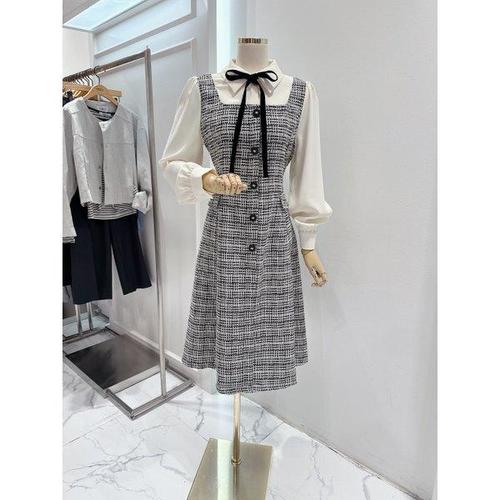 갤러리아_[ab.f.z] 리본 타이 배색 트위드 원피스(ATA1HO01A)