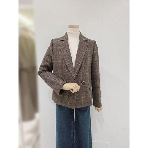 루스리더 여성 카라넥 체크무늬 데일리 정장 자켓 E45