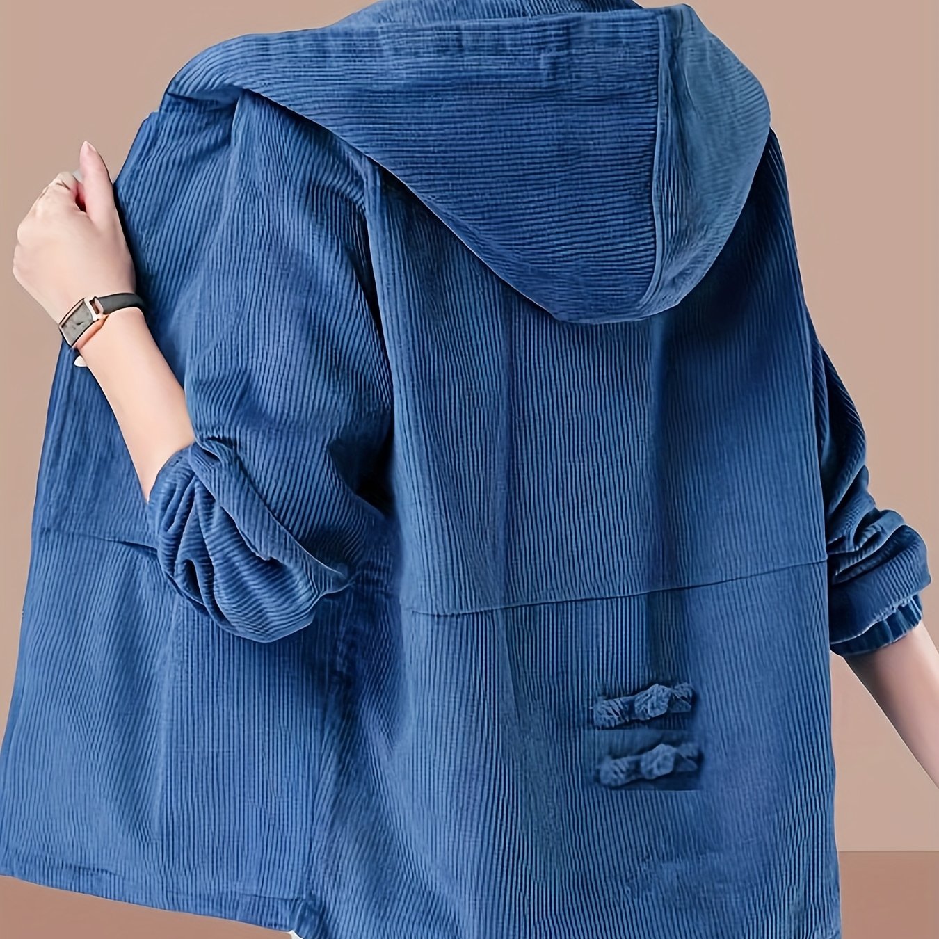 TEMU 여성 캐주얼 코듀로이 후드 집업 재킷 - 루즈핏, 긴소매, 단색, 봄/가을에 다용도로 활용 가능, 캐주얼 웨어|후드 재킷|지퍼 재킷|패션