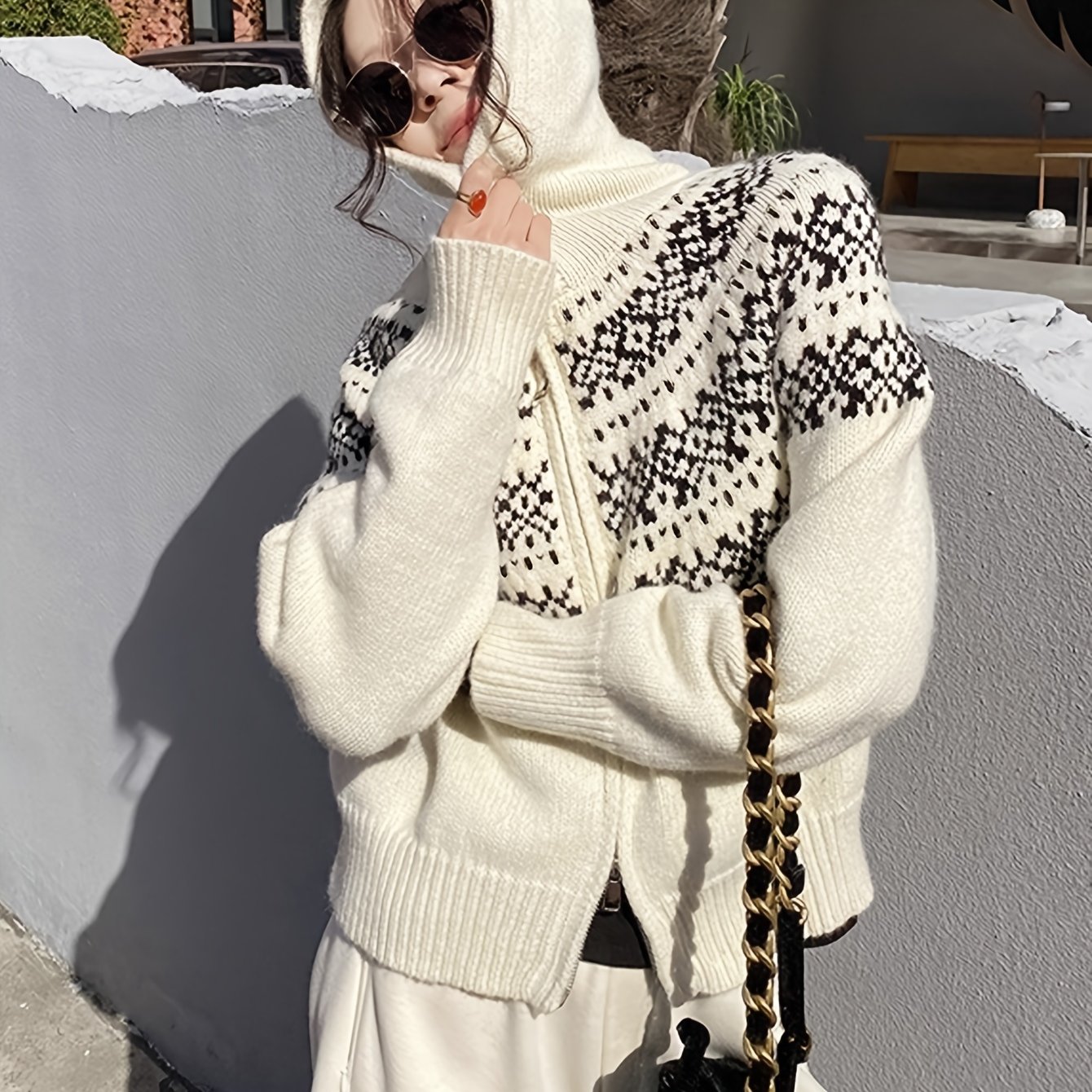TEMU 여성용 우아한 후드 스웨터 재킷 - 지퍼 프론트 클로저, 루즈핏 가디건, 긴 소매 겨울 코트, 일상 및 정장용 - 가을/겨울 아우터웨어, 캐주얼 레이어링 피스, 텍스처 니트웨어, 편안한 니트, 스타일리시 후디, 오피스 웨어