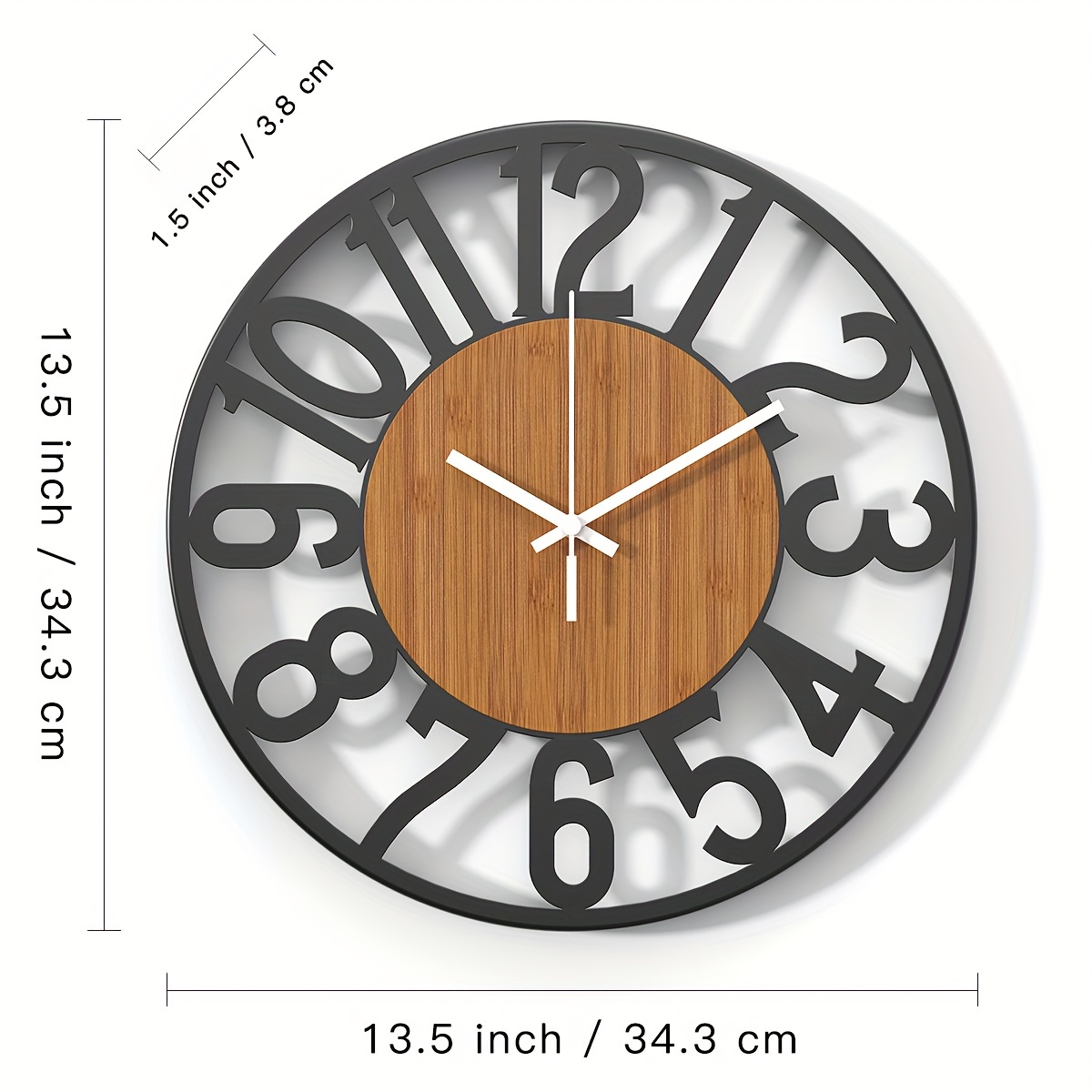 TEMU 빈티지 스타일 무소음 벽시계, 아라비아 숫자 - 배터리 작동, 거실 장식용 메탈 프레임