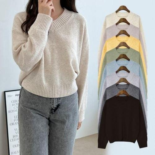 [필수템/컬러포인트!] 로니 베이직 브이넥 컬러 니트, 기본핏 여리 루즈핏 디자인
