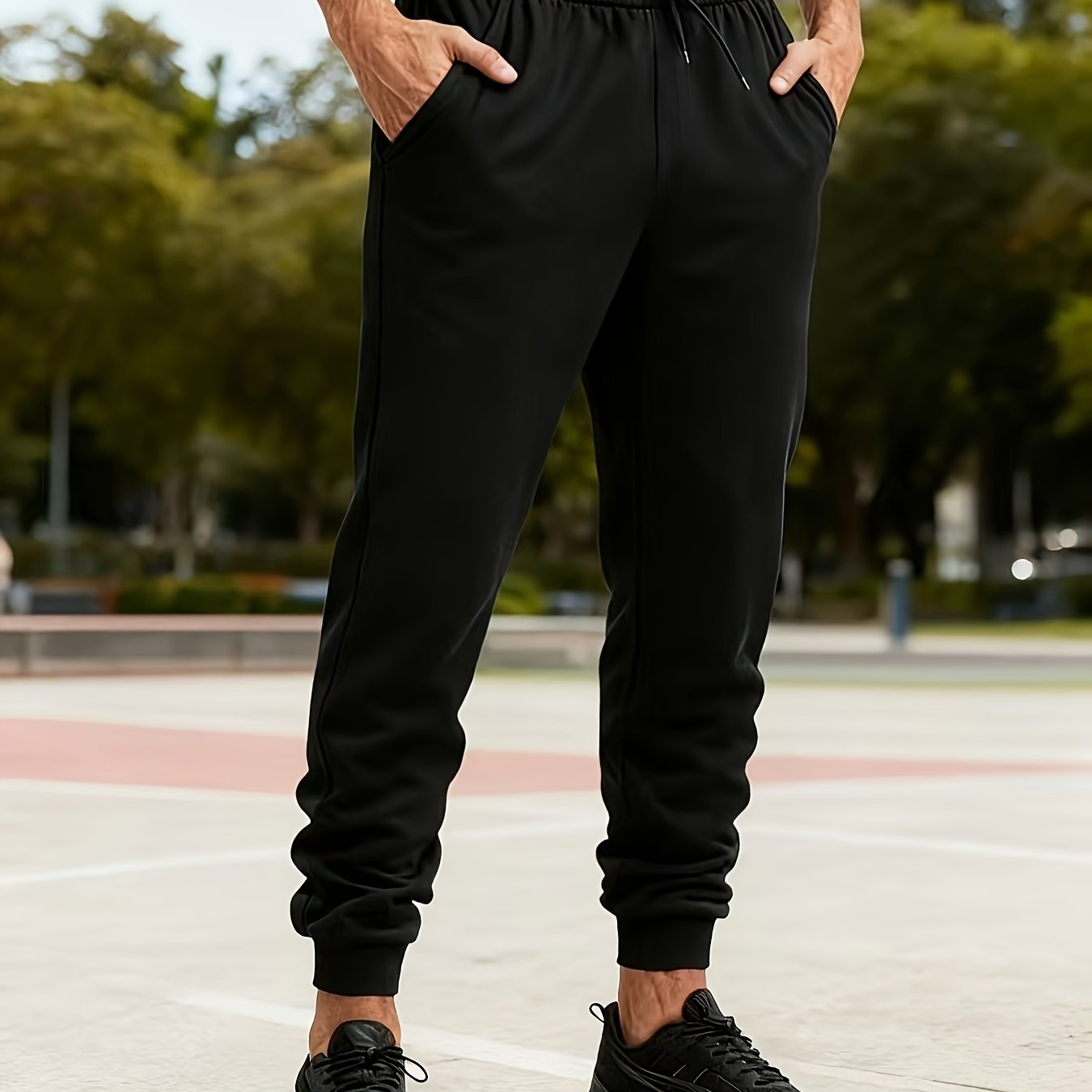 TEMU 남성용 블랙 롱팬츠 - 캐주얼하고 다용도 스포츠 팬츠