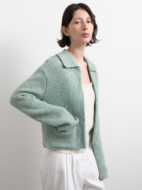 [무카] 울 블렌디드 트위드 니트 가디건 (그린)