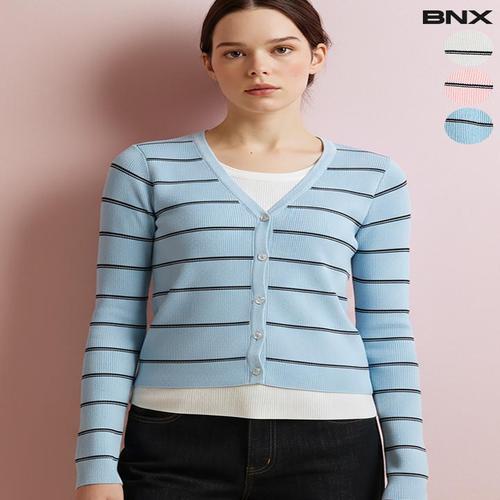 [BNX]스트라이프 카라 배색 자수 가디건 (BX4CD001L0)