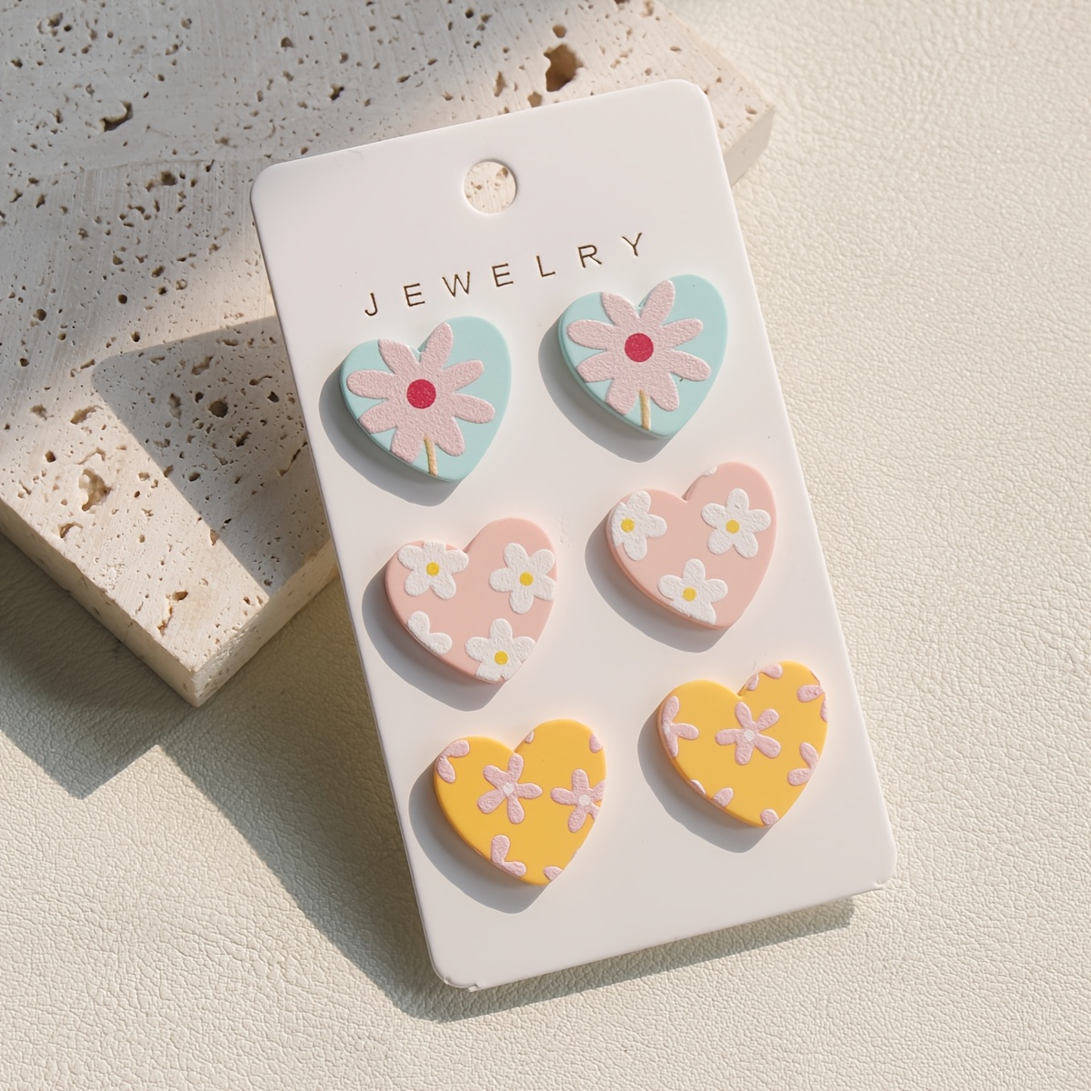 TEMU 3-in-1 카드 여성 스터드 귀걸이, 봄/여름 신상 라운드 플라워 모양 믹스 귀걸이, 클레이 텍스처 빈티지 귀여운 휴일 선물 주얼리