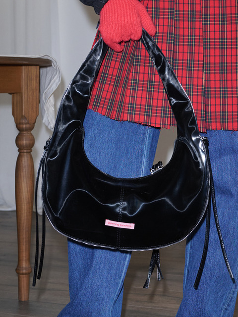 여성 소가죽 호보백 크로스 가방 숄더백 블랙