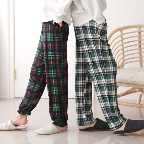 남자 여성 체크 심플 피치 기모 팬츠 커플 파자마 이지웨어 홈웨어 잠옷바지