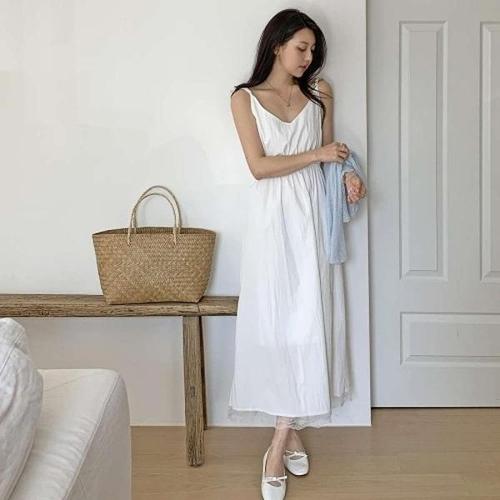[신상오픈런]|CHO55E4|여성 휴가용 끈 나시 플레어 롱 드레스_21887465_597559