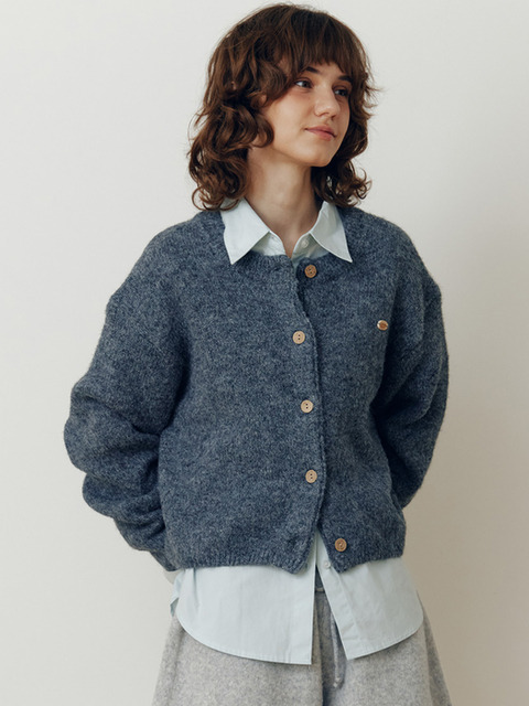 [코스에그] Hairy Round Knit Cardigan_EEFCA76_Charcoal