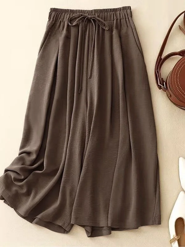 하이웨이스트 루즈핏 와이드 레그 팬츠 여성 플러스 사이즈 7부 캐주얼 스커트 팬츠 2025 트렌디 여성 캐주얼 트라우저