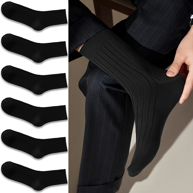 TEMU 남성용 드레스 양말 6켤레 - 통기성 및 땀 흡수, 사계절용 편안함, 비즈니스 캐주얼 & 아웃도어 착용을 위한 소프트 리브 디자인, 다양한 단색 (블랙/다크 그레이/네이비/화이트/그레이/브라운) - 세탁 가능, 다재다능한 색상, 클래식 양말 디자인, 편안한 소재