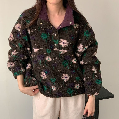 플러리싱 / 플라워 덤블 뽀글이 하프 버튼 후리스 맨투맨 플러리