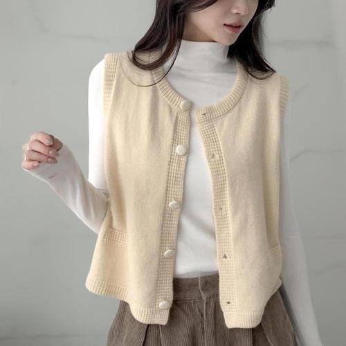[다잇템][다잇템] 여성 베이직 클래식 U넥 스웨터 베스트 단추 FW 시즌 스타일_23652909_588872