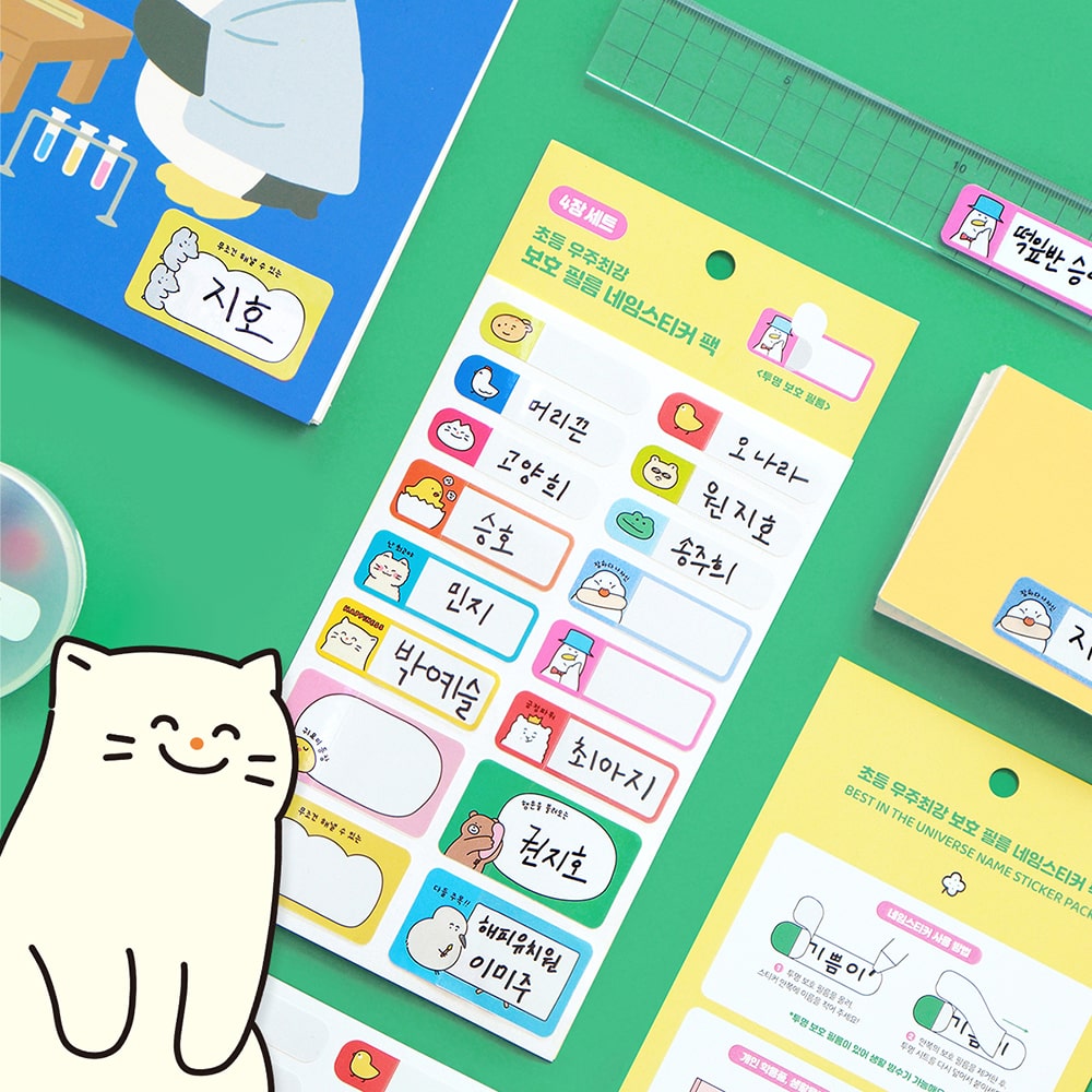 어린이 초등 우주최강 보호 필름 네임스티커 팩 (4매)